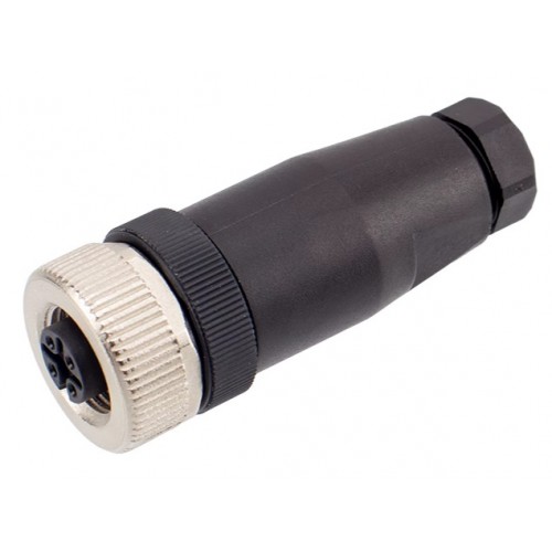 Роз'єм M12 A 120013 - це кабельна розетка на 8 контактів, призначена для промислового застосування, де потрібна надійна передача сигналу та висока довговічність. Номінальна напруга 30В та струм 2А, має переріз кабеля 0.34 мм².