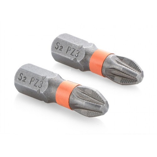 Біти S2 PZ3x25 мм, 2шт Sturm 1272303 - довжиною 25 мм, для закручування та відкручування кріплень із хрестоподібним шліцом PZ3. На відміну від класичних хрестоподібних біт PH, біти з шліцом PZ мають додаткову насічку, що забезпечує краще зачеплення. Завдяки стандартному шестигранному хвостовику ¼ дюйма вона сумісна як із ручними, так і з електроінструментами (шуруповерти, акумуляторні викрутки, дрилі). Виконана з високоякісної S2 сталі, з підвищеним вмістом вуглецю та легуючими елементами (молібден, ванадій, хром), що забезпечує твердість HRC 58–62 і довговічність при інтенсивному використанні.
