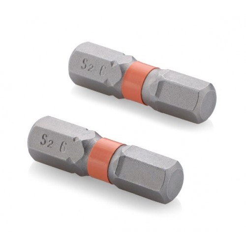 Біти S2 HEX6x25мм, 2шт Sturm 1273304 - довжиною 25 мм, для закручування та відкручування кріплень з шестигранним типом шліцю HEX6. Завдяки стандартному шестигранному хвостовику ¼ дюйма вона сумісна як із ручними, так і з електроінструментами (шуруповерти, акумуляторні викрутки, дрилі). Виконана з високоякісної S2 сталі, з підвищеним вмістом вуглецю та легуючими елементами (молібден, ванадій, хром), що забезпечує твердість HRC 58–62 і довговічність при інтенсивному використанні.