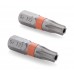 Біти S2 T-27×25 мм Tamper, 2шт 1274305 - довжиною 25 мм призначена для відкручування та закручування кріпильних виробів з типом шліцю TORX 27. Завдяки шестигранному хвостовику ¼ дюйма вона сумісна як з ручними, так і з електроінструментами (шуруповерти, акумуляторні викрутки, дрилі). Виконана з високоякісної S2 сталі, з підвищеним вмістом вуглецю та легуючими елементами (молібден, ванадій, хром), що забезпечує жорсткість HRC 58 - 62 та довговічність при інтенсивному використанні. Для запобігання вислизанню з кріплення робоча частина біти намагнічена.