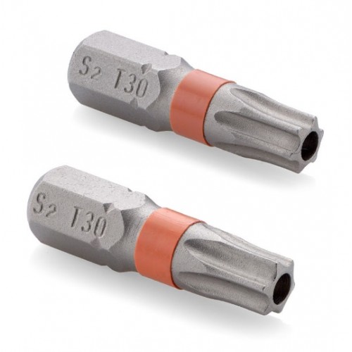 Біти S2 T-30×25 мм Tamper, 2шт 1274306 - довжиною 25 мм призначена для відкручування та закручування кріпильних виробів з типом шліцю TORX 30. Завдяки шестигранному хвостовику ¼ дюйма вона сумісна як з ручними, так і з електроінструментами (шуруповерти, акумуляторні викрутки, дрилі). Виконана з високоякісної S2 сталі, з підвищеним вмістом вуглецю та легуючими елементами (молібден, ванадій, хром), що забезпечує жорсткість HRC 58 - 62 та довговічність при інтенсивному використанні. Для запобігання вислизанню з кріплення робоча частина біти намагнічена.