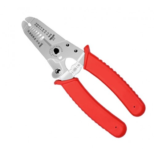 Інструмент для зачистки електричних дротів 2075 – на лезах є отвори різних діаметрів для зняття ізоляції з дротів різних перерізів – від 0.6мм до 2.5мм. Виготовлений із твердолегованої сталі, яка забезпечує високу зносостійкість, довговічність та стійкість до навантажень. Робочі кромки заточуються до високої гостроти, що дозволяє легко та чисто різати без зминання. Металева частина має спеціальне антикорозійне покриття, що захищає інструмент від іржі та окислення під час роботи у вологому середовищі або при тривалому зберіганні. Інструмент оснащений фіксатором-запобіжником, який дозволяє зафіксувати губки у закритому положенні. Це робить зберігання та перенесення безпечнішими, виключає випадкове пошкодження та полегшує роботу майстра.