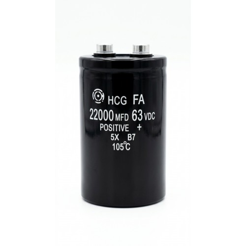Електролітичний конденсатор 22000 мкФ 63 В 105°С в алюмінієвому циліндричному корпусі, з гвинтовим кріпленням.