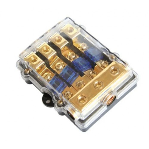 Чотирьохконтактний тримач запобіжника AFS-14 - доступний для систем з напругою до 32В постійного струму, номінальний струм від 20А до 200А та підходить для входу дроту калібру 4, та на виході 8.