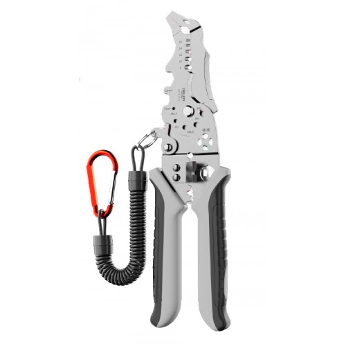 Багатофункціональні плоскогубці, стрипер для зачищення, обтискання та різання проводів Arc Eagle 21-1. Надійний і універсальний інструмент, призначений для електромонтажних і ремонтних робіт. Поєднує в собі функції плоскогубців, стрипера, кримпера та кабелеріза, що робить його чудовим вибором як для професіоналів, так і для побутового використання.