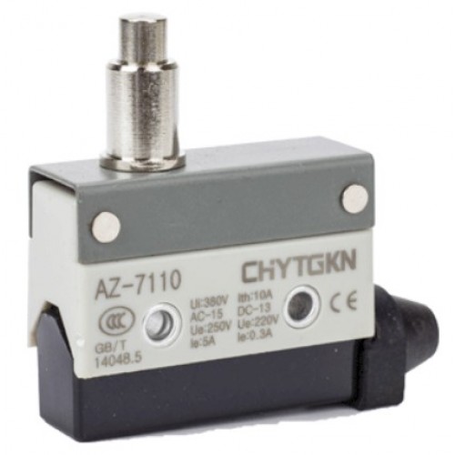 Вимикач шляховий кінцевий (кінцевий) серії AZ-7110 має привід штовхач кнопковий і спрацьовує при натисканні. Комутує ланцюги до 10 ампер 250 вольт змінного струму і 0,4 ампер 155 вольт постійного струму.