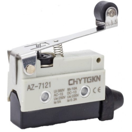 Вимикач шляховий кінцевий (кінцевий) серії AZ-7121 має привід важіль з роликом і спрацьовує при натисканні. Комутує ланцюги до 10 ампер 250 вольт змінного струму і 0,4 ампер 155 вольт постійного струму.