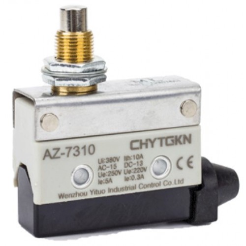 Вимикач шляховий кінцевий (кінцевий) серії AZ-7310 має привід штовхач кнопковий і спрацьовує при натисканні. Комутує ланцюги до 10 ампер 250 вольт змінного струму і 0,4 ампер 155 вольт постійного струму.