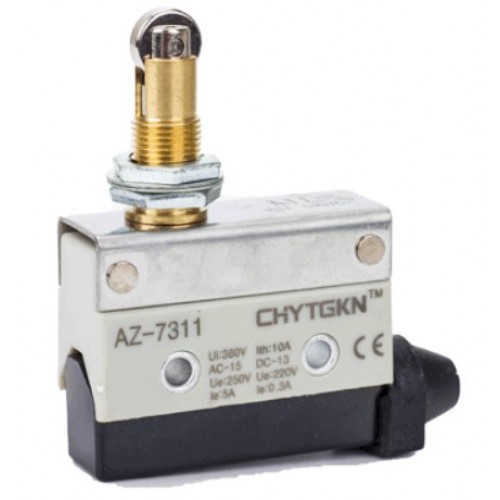 Вимикач шляховий кінцевий (кінцевий) серії AZ-7311 має привід штовхач кнопковий і спрацьовує при натисканні. Комутує ланцюги до 10 ампер 250 вольт змінного струму і 0,4 ампер 155 вольт постійного струму.