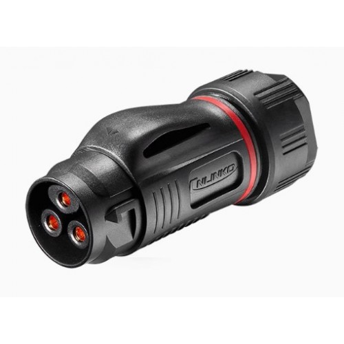 Роз'єм характеризується високою стійкістю до впливу пилу та вологи (захист за стандартом IP67), що робить його придатним для використання у складних умовах. Матеріал корпусу відрізняється міцністю, забезпечуючи довговічність та захист від механічних пошкоджень. Роз'єм має трьохточкову конструкцію з'єднання, що дозволяє легко і швидко підключатись. Контакти виконані з високоякісного мідного сплаву.