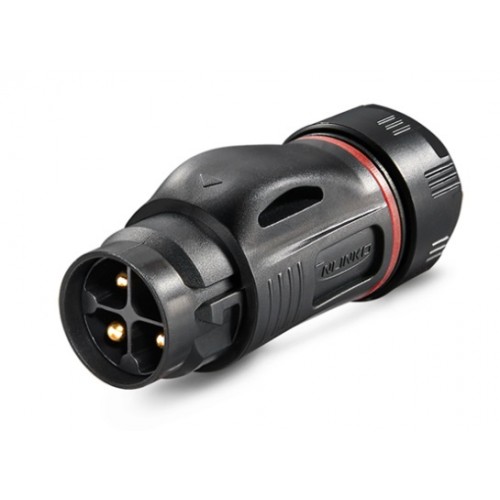 Роз'єм характеризується високою стійкістю до впливу пилу та вологи (захист за стандартом IP67), що робить його придатним для використання у складних умовах. Матеріал корпусу відрізняється міцністю, забезпечуючи довговічність та захист від механічних пошкоджень. Роз'єм має трьохточкову конструкцію з'єднання, що дозволяє легко і швидко підключатись. Контакти виконані з високоякісного мідного сплаву.