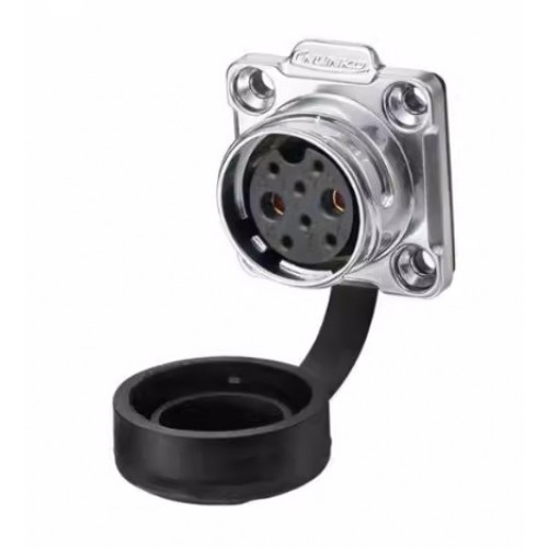 Роз'єм швидкороз'ємний (байонетний) DH-20-J08SX-03-401A - 8-и контактна герметична панельна розетка з фланцем на 4 гвинти. Має посадковий діаметр 20 мм - коннектор ручного з'єднання, циліндричний, внутрішнього монтажу, з'єднує ланцюги 20+5 А і напругою до 250 В.