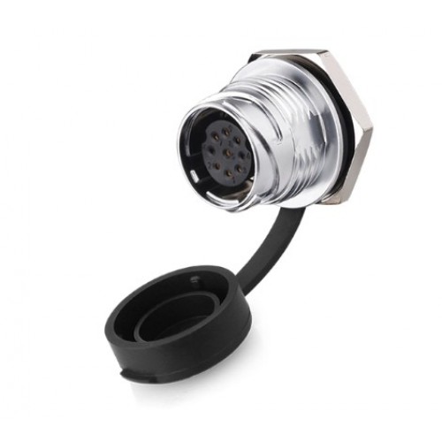Роз'єм швидкоз'ємний (байонетний) DH-20-J09SX-03-001A - 7-ми контактна герметична панельна розетка з прямим виведенням під кабель на шайбі. Має посадковий діаметр 20 мм - конектор ручного з'єднання, циліндричний, внутрішнього монтажу, з'єднує ланцюги 5 А і напругою до 250В.