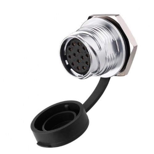 Роз'єм швидкоз'ємний (байонетний) DH-20-J14SX-03-001A - 12-ти контактна герметична панельна розетка з прямим виведенням під кабель на шайбі. Має посадковий діаметр 20 мм - конектор ручного з'єднання, циліндричний, внутрішнього монтажу, з'єднує ланцюги 5А і напругою до 250В.