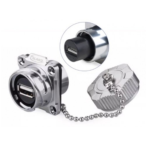 Герметичний роз'єм USB2.0 DH-24-J/USB2/213/SX-43-402A - панельна розетка з металевою захисною кришкою байонетного (швидкорозбірного) типу серії DH в корпусі із спеціального сплаву, який зменшує електромагнітні та радіочастотні перешкоди, з особливою технологією з'єднання. Цей сплав стійкий до корозії, стійкий до температури і тиску.