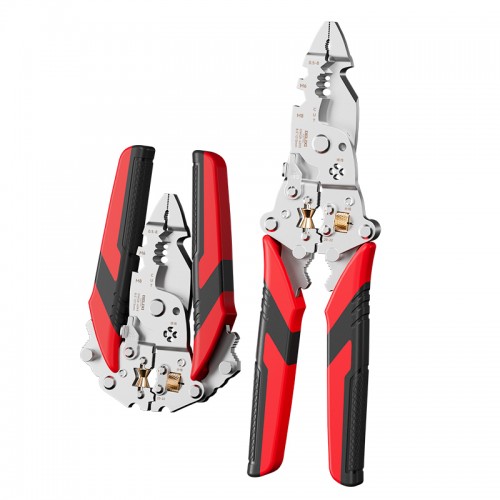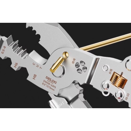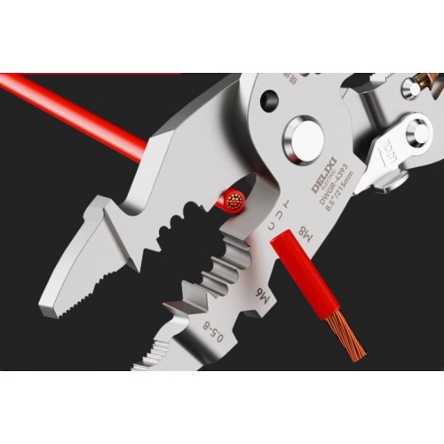 Інструмент для зачистки електричних дротів DWGR-4393 – призначений для професійної та побутової роботи з електропроводкою. Поєднує в собі одразу 16 функцій, що робить її універсальним рішенням для майстра-електрика чи домашнього використання. Цей інструмент замінює одразу кілька пристроїв: кусачки, стрипер, обтискний інструмент та ножиці для кабелю. Ідеально підходить для електромонтажних робіт, ремонту техніки, підключення електроприладів.