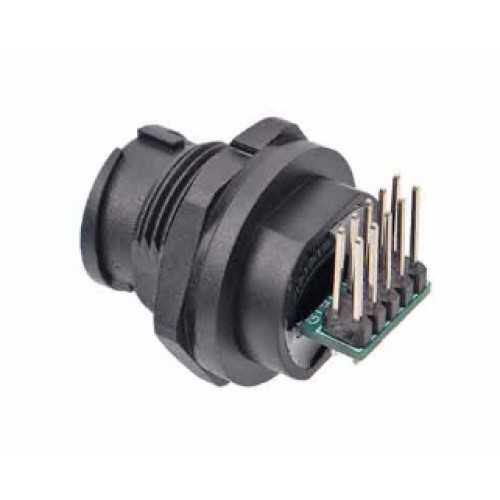 Панельний конектор кріпиться до приладової частини гайкою. Може комплектуватися водопилозахистною кришкою.