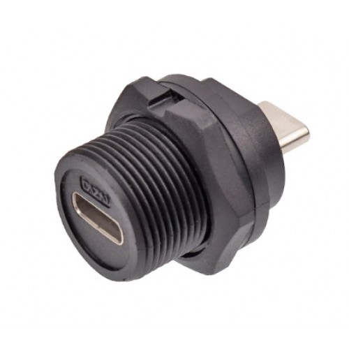 Герметичний роз'єм E10523-TYPE-C 3.1 - прохідний з'єднувач TYPE-C в герметичному панельному виконанні ручного з'єднання. Кріплення до парного конектора – різьбове.