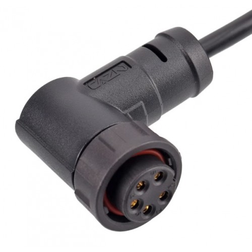 Кутова кабельна розетка E13B-S7-MWD-1PV - водонепроникний пластиковий конектор на 7 контактів з байонетним з'єднанням. З'єднує ланцюг до 5А і напругою до 60В. Контакти конектора вироблені з міді і покриті золотом - золото має низький опір, що покращує передачу сигналів і зменшує нагрівання в точках контакту, забезпечує стабільний електричний контакт, знижуючи ризик втрати сигналу через окиси чи забруднення.