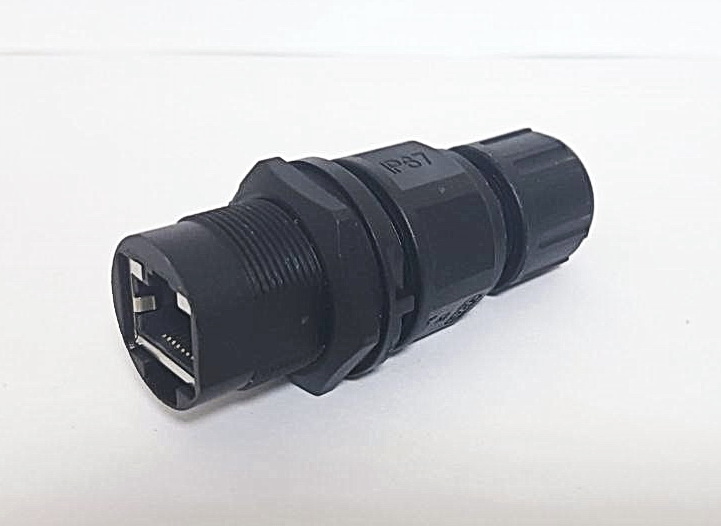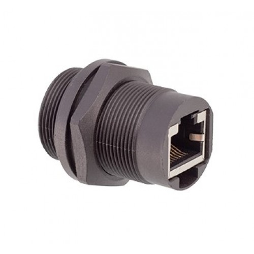 Розетка RJ45 E13T - F R6 - PRB - пряма прохідна розетка для кріплення на блоці приладу та фіксацією до блока гайкою всередені. Ззовні розетка має різьбу для зєднання з вилкою E13T - M RJ - PRA 06 або з вилкою E13T - M R6 - MCA / NCA - 1 PV - S або з кутовою вилкою E13T - M R6 - MCD / NCA - 1 PV - S
