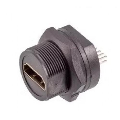 Герметичний роз'єм HDMI E13T - F H4 - PPF - прохідний з'єднувач HDMI в герметичному панельному виконанні ручного з'єднання. З вихідними кнтактами під друковану плату. Підтримує передачу відео з роздільною здатністю до 4K, зберігаючи стабільність сигналу навіть у складних умовах експлуатації.