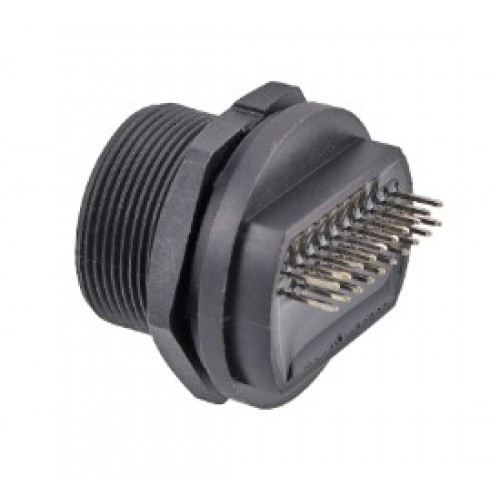 Панельний конектор кріпиться до приладової частини гайкою попереду. Може комплектуватися водопилозахистною кришкою.
