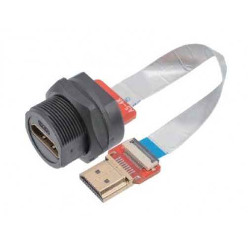 Герметичний кабель E13T - F H4 - PRF / M H4 - NRA - FFC - кабель HDMI "мама" (розетка) - "тато" (вилка) . Вилка на шлейфі. Вилка виконана в герметичному панельному корпусі. Підтримує передачу відео з роздільною здатністю до 4K, зберігаючи стабільність сигналу навіть у складних умовах експлуатації.