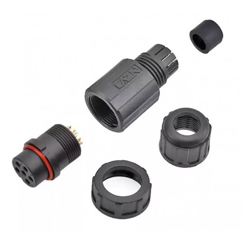 Міжкабельна вилка E13B-P7-PWK-10 - водонепроникний пластиковий конектор на 7 контактів з байонетним з'єднанням. З'єднує ланцюг до і напругою до 60В. Контакти конектора вироблені з міді і покриті золотом - золото має низький опір, що покращує передачу сигналів і зменшує нагрівання в точках контакту, забезпечує стабільний електричний контакт, знижуючи ризик втрати сигналу через окиси чи забруднення.