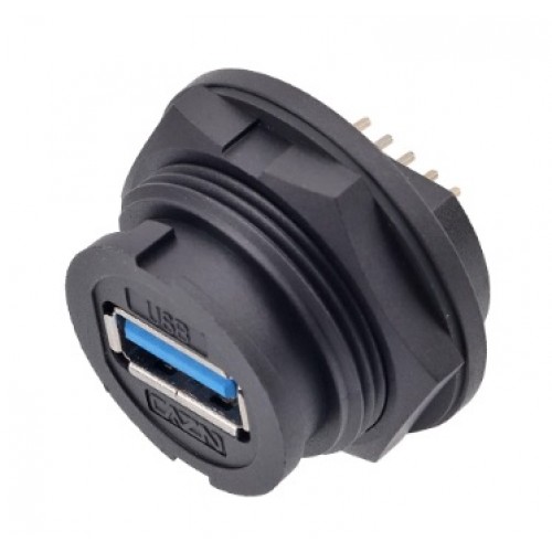 Герметичний роз'єм USB3.0 E16556 - прохідний з'єднувач USB 3.0 в герметичному панельному виконанні ручного з'єднання. З вихідними кнтактами під друковану плату.