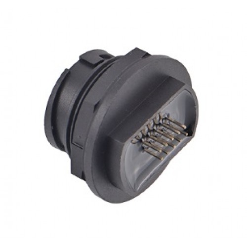 Панельний конектор кріпиться до приладової частини гайкою попереду. Може комплектуватися водопилозахистною кришкою.
