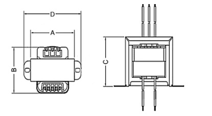 - Розміри трансформатора, мм - А=50; В = 45; С = 43; D = 72.