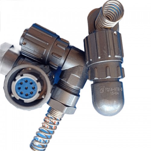 Роз'єм байонетної серії FQ14-2TRK-8 (посадковий діаметр 14 мм) — двоконтактна кутова кабельна розетка ручного з'єднання. Діаметр контактів d=1,5 мм, номінальна напруга 400В та струмове навантаження до 10А.
