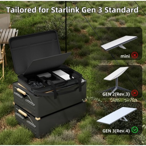 Футляр GEN3-BAG2 для Starlink Gen 3 – має спеціально виготовлену внутрішню частину для організованого зберігання, водонепроникний зовнішній корпус, а також ручку для перенесення та плечовий ремінь для зручного транспортування. Його міцна конструкція та зручний дизайн роблять його чудовим рішенням для подорожей із системою Starlink Gen 3.