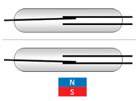 У нормальному стані контакти замкнуті. При впливі магніту контакти розмикаються. |