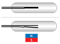 У нормальному стані контакти розімкнуті. При впливі магніту контакти замикаються |