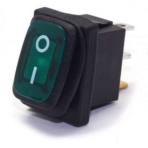 Клавішний перемикач з захистом IP65 - KCD1-0111-G (KCD1-102N) має 3 контакта, зелену LED підсвітку.