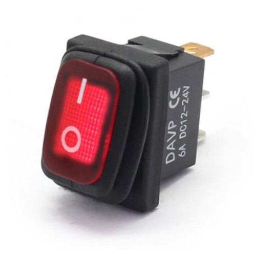 Клавішний перемикач з захистом IP65 - KCD1-0111-R (KCD1-102N) має 3 контакта, червону LED підсвітку.