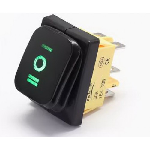 Клавішний перемикач з захистом IP65 - KCD4-0113-21-R має 6 контактів, зелену LED підсвітку.