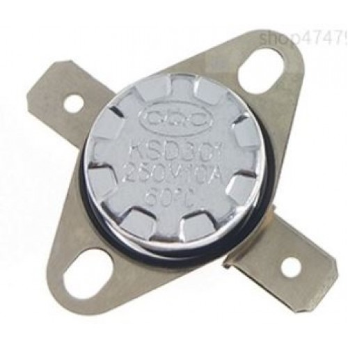 Термостат KSD301-60 NO (нормально розімкнений) 10A 250V - при нагріванні понад температуру 60°С замикає електричний ланцюг. Температура скидання - 45°С