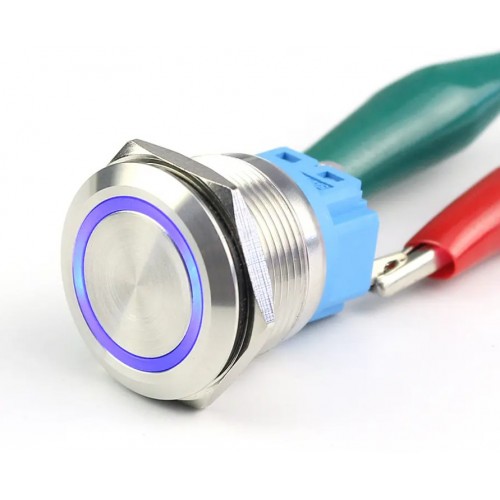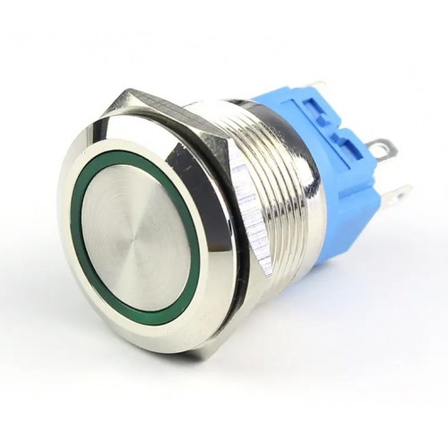 Кнопка антивандальна LAS3-22F-11EL/S ON-ON діаметром 22 мм - антивандальний металевий вимикач із кільцевою LED-підсвіткою, контактною групою SPDT (1NO1NC). Підходить для використання в промисловому, транспортному та побутовому обладнанні, де потрібна надійність і стійкість до зовнішніх впливів.