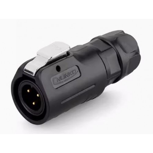 Герметичний роз'єм живлення серії LP - LP-12-C03PE-02-001 - 3-х контактна герметична кабельна вилка серії LP з прямим виводом під кабель 24AWG. Вилка має прохідний діаметр - 12 мм.