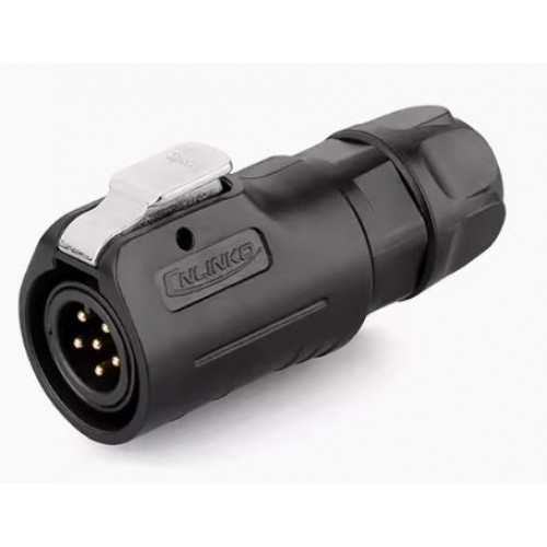 Герметичний роз'єм живлення серії LP - LP-12-C06PE-02-001 - 6-и контактна герметична кабельна вилка з замком серії LP з прямим виводом під кабель 24 AWG. Розетка має прохідний діаметр - 12 мм, з'єднує ланцюг до 5 А і напругою до 150 В.