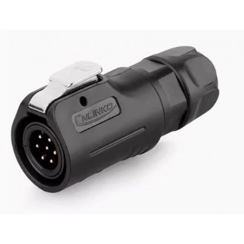 Герметичний роз'єм живлення серії LP - LP-12-C07PE-02-001 - 7-и контактна герметична кабельна вилка з замком серії LP з прямим виводом під кабель 24 AWG. Розетка має прохідний діаметр - 12 мм, з'єднує ланцюг до 3 А і напругою до 100 В.