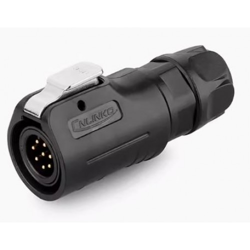 Герметичний роз'єм живлення серії LP - LP-12-C08PE-02-001 - 8-и контактна герметична кабельна вилка з замком серії LP з прямим виводом під кабель 24 AWG. Розетка має прохідний діаметр - 12 мм, з'єднує ланцюг до 3 А і напругою до 100 В.