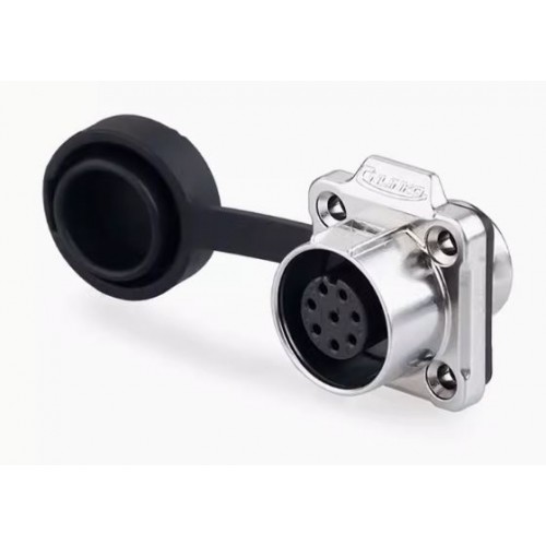 Герметичний роз'єм живлення серії LP - LP-12-J08SX-03-401A - 8-и контактна герметична панельна (блокова) розетка серії LP в металевому корпусі з прямим виводом під кабель 24 AWG. Розетка має прохідний діаметр - 12 мм, з'єднує ланцюг до 3 А і напругою до 100 В.