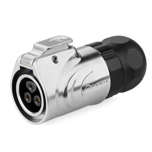 Герметичний роз'єм живлення серії LP - LP-16-J03PE-03-001 - 3-х контактна герметична кабельна розетка серії LP в металі, з'єднує ланцюг з навантаженням до 10А и 400В, з прямим виводом під кабель 18-16 AWG і з замком, який забезпечує надійне замикання з'єднувачів та герметичність. Розетка має прохідной діаметр - 16 мм.