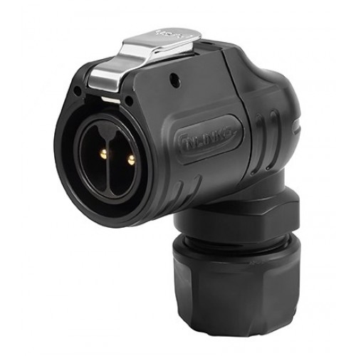 Герметичний роз'єм живлення серії LP - LP-20-C02PE-02-013A - кутова 2-х контактна герметична кабельна вилка серії LP з кутовим виводом під кабель 22-20 AWG. Роз'єм має прохідний діаметр - 20 мм, з'єднує ланцюг до 20 А і напругою до 500 В.