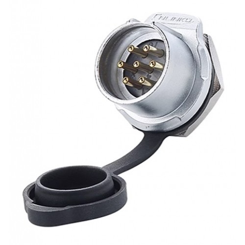Герметичний роз'єм живлення серії LP - LP-20-C07SX-03-101 - 7-и контактна герметична панельна вилка серії LP з прямим виводом під кабель 1,5мм2 / 16AWG. Вилка має прохідний діаметр - 20 мм, з'єднує ланцюг до 10 А і напругою до 500 В.