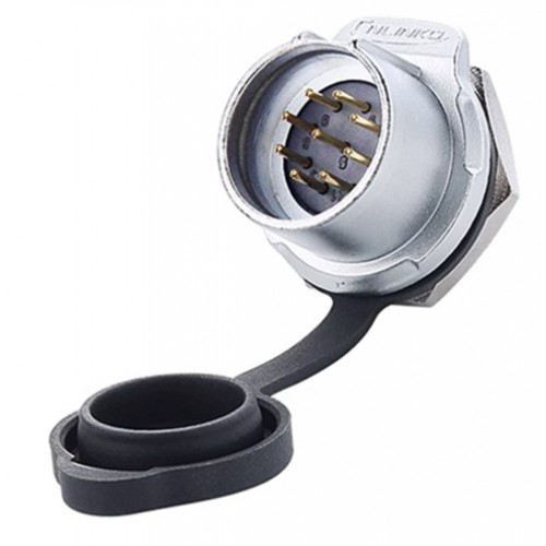 Герметичний роз'єм живлення серії LP - LP-20-C09SX-03-101 - 9-ти контактна герметична панельна вилка серії LP з прямим виводом під кабель 14-12 AWG. Вилка має прохідний діаметр - 20 мм, з'єднує ланцюг до 5 А і напругою до 250 В.