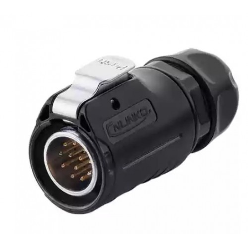 Герметичний роз'єм живлення серії LP -  LP-20-C12PE-01-022 12-и контактна  герметична кабельна вилка серії LP з прямим виводом під кабель. Вилка має діаметр контактів 1мм, з'єднує ланцюг до 5 А і напругою до 250 В.